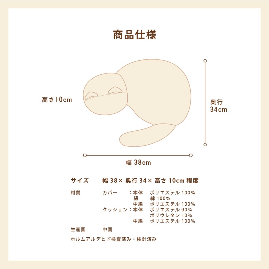 ・幅38×奥行34×高さ10cm程度(しっぽ含む)